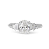 Platinum Oval and Baguette Diamond 5 Stone Ring