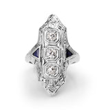 18ct White Gold Art Deco Diamond and Sapphire Ring