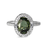 18ct White Gold Deco Style Green Sapphire And Diamond Halo Ring