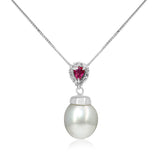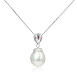 18ct White Gold Ruby, Diamond and South Sea 12mm Pearl Necklace