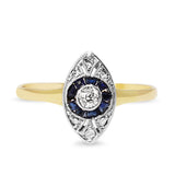 18ct Yellow and White Gold Art Deco Sapphire and Diamond Marquise Shaped Ring