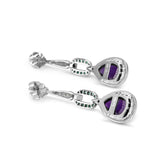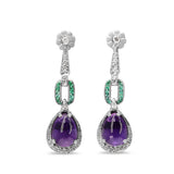 9ct White Gold Diamond, Emerald and Amethyst Art Deco Style Drop Earrings