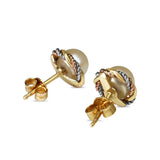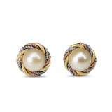 9ct Yellow Gold 3 Tone Rose, White and Yellow Gold Twist Fresh Water Pearl Stud Earrings
