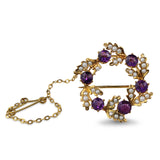 9ct Yellow Gold Antique Amethyst and Pearl Wreath Brooch