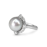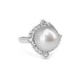 Platinum 12mm South Sea Pearl and Diamond Halo Ring