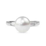 Platinum 8mm Cultured Pearl and Baguette Diamond Ring