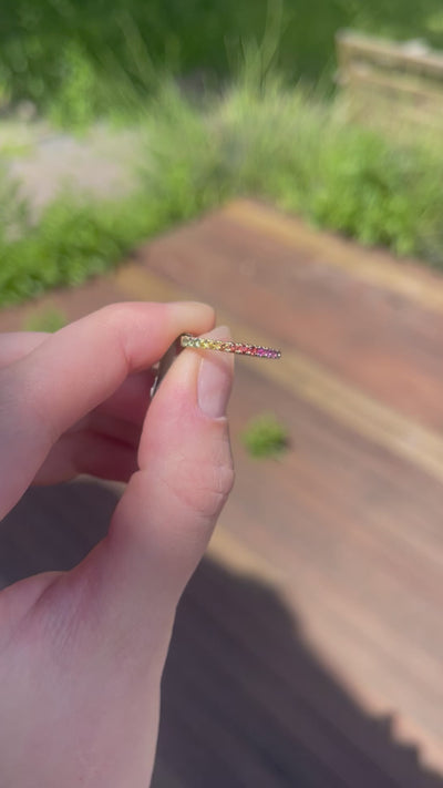 9ct Yellow Gold Multi Colour Sapphire Rainbow Band Ring