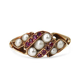 9ct Yellow Gold Antique Victorian Ruby and Seed Pearl Ring