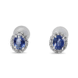 Platinum Sapphire and Diamond Halo Stud Earrings