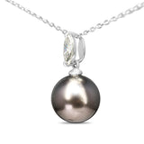 18ct White Gold 11.5mm Tahitian Pearl and Marquise Diamond Necklace