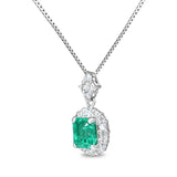 Platinum Emerald and Diamond Halo Necklace