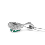 Platinum Emerald and Diamond Pear Shaped Halo Necklace