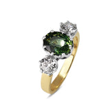 18ct Yellow and White Gold 3 Stone Green Sapphire and Diamond Ring