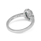 Platinum Emerald Cut Diamond with Sapphire and Emerald Art Deco Style Halo