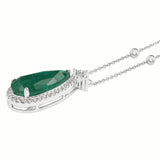 18ct White Gold Emerald and Diamond Pear Drop Necklace
