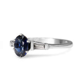 Platinum Oval Sapphire and Baguette Diamond 3 Stone Ring