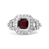 9ct White Gold Ruby and Diamond Art Deco Style Ring