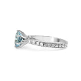 14ct White Gold Engraved Aquamarine and Diamond Solitaire Ring
