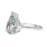 18ct White Gold Pear Aquamarine and Diamond 3 Stone Ring