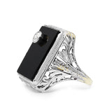 14ct Yellow and White Gold Art Deco Onyx and Diamond Ring