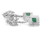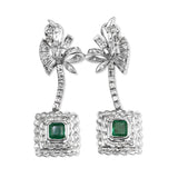 Platinum and Palladium Emerald and Diamond Deco Earrings