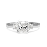 18ct White Gold Radiant and Trapezoid 3 Stone Diamond Ring