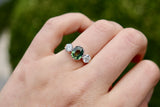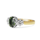 18ct Yellow and White Gold 3 Stone Green Sapphire and Diamond Ring