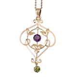 9ct Rose Gold Antique Peridot and Amethyst Suffragette Necklace
