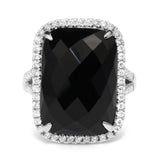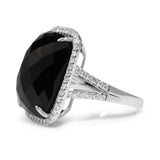 18ct White Gold Faceted Onyx and Diamond Cocktail Ring