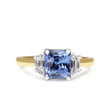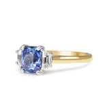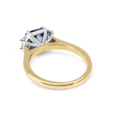 18ct Yellow and White Gold Cushion Sapphire and Half Moon Diamond 3 Stone Ring