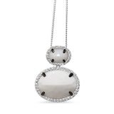 18ct White Gold Agate and Diamond Halo Pendant with Black Rhodium Claws