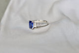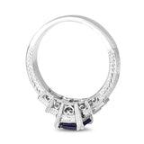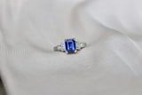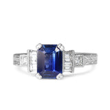 Platinum Sapphire and Diamond Art Deco Style Engraved Band Ring