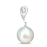 18ct White Gold 15.7mm South Sea Pearl and Heart Diamond Pendant