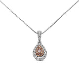 18ct White and Rose Gold Pink and White Diamond Pear Shaped Halo Necklace