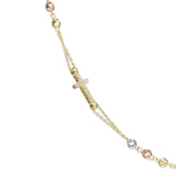 18ct Yellow, Rose and White Rosary Bead Necklace With Sapphires and Diamonds