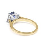 18ct Yellow and White Gold 2.60ct Cornflower Blue Sapphire and Half Moon Diamond 3 Stone Ring