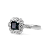 18ct White Gold Sapphire and Diamond Art Deco Style Halo Ring
