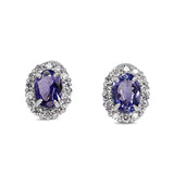 18ct White Gold Tanzanite and Diamond Halo Stud Earrings