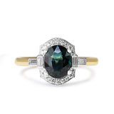 18ct Yellow and White Gold Deco Style Sapphire and Diamond Halo Ring
