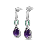 9ct White Gold Diamond, Emerald and Amethyst Art Deco Style Drop Earrings
