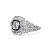 Platinum Art Deco Sapphire and Old Cut Diamond Ring