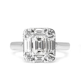 18ct White Gold Emerald, Baguette and Brilliant Cut Deco Style Diamond Ring