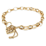 9ct Yellow Gold Oval Belcher Link Bracelet with Filigree Padlock Clasp