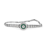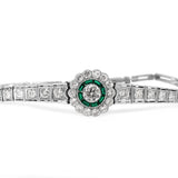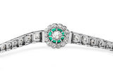 Platinum Art Deco Emerald and Diamond Daisy Flower Bracelet
