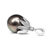 18ct White Gold 12mm Tahitian Pearl and Diamond Flower Cap Pendant