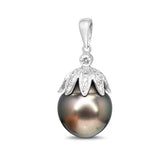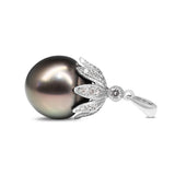 18ct White Gold 12mm Tahitian Pearl and Diamond Flower Cap Pendant