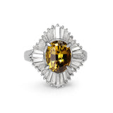 Platinum Yellow Sapphire and Diamond Halo Ballerina Style Ring