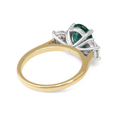 18ct Yellow and White Gold Oval Emerald and Round Diamond 3 Stone Ring