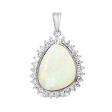 Platinum Opal and Diamond Halo Pendant